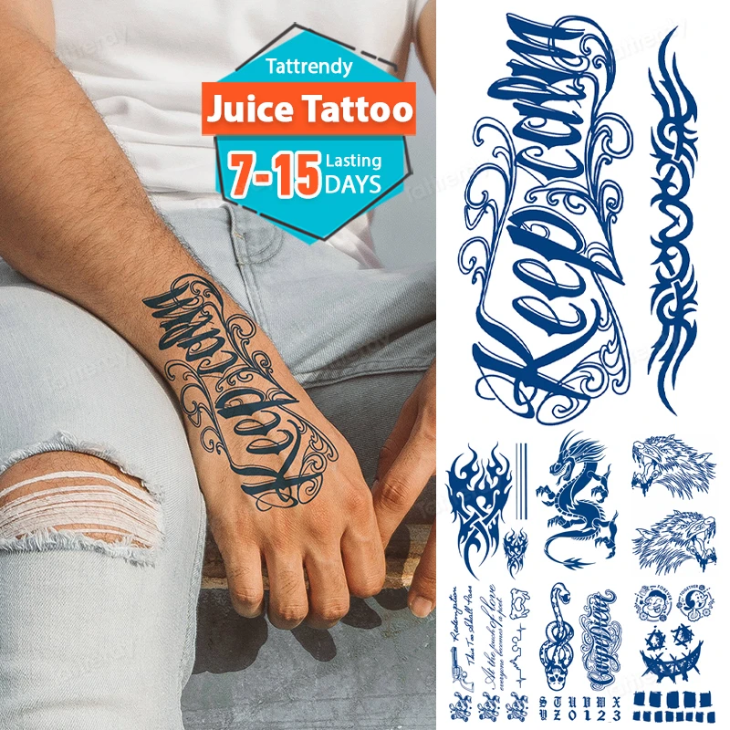 English Letter Words Temporary Tattoo Juice Ink Blue Lasting Waterproof Tattoo Sticker Dragon Totem Tribal Hand Arm Tattoo Fake Temporary Tattoos Aliexpress